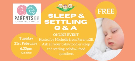 Following on from the recent success, Michelle from Parents2B (P2B) will be hosting aother ONLINE Sleep and Settling Q&A session TUESDAY 21st February at 6.30pm (Qld time), exclusively for the GCMBA community. No matter whether you are an expectant parent wanting to be prepared, or a parent of multiples looking for some advice.... Come along, ask your burning questions and hear Michelle share her wisdom and knowledge on baby and toddler sleep and settling, introducing solids & the impacts of food. Michelle is a registered midwife, nurse, childbirth educator and infant sleep specialist. For more information on Parents2B check out: www.Parents2B.com.au This is a FREE workshop for all of our Gold Coast Multiple Birth Community. Tag yourself as going to the Facebook event in our private FB group to receive the Zoom details.  If you're not on FB, email secretary@goldcoastmultiplebirth.com for the details. Want to ask your questions in advance? Pop them into the Facebook event comments and we'll put them to Michelle!