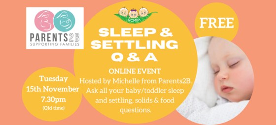 Following on from the recent success, Michelle from Parents2B (P2B) will be hosting aother ONLINE Sleep and Settling Q&A session TUESDAY 15th November at 7.30pm (Qld time), exclusively for the GCMBA community. No matter whether you are an expectant parent wanting to be prepared, or a parent of multiples looking for some advice.... Come along, ask your burning questions and hear Michelle share her wisdom and knowledge on baby and toddler sleep and settling, introducing solids & the impacts of food. Michelle is a registered midwife, nurse, childbirth educator and infant sleep specialist. For more information on Parents2B check out: www.Parents2B.com.au This is a FREE workshop for all of our Gold Coast Multiple Birth Community. Tag yourself as going to the Facebook event in our private FB group to receive the Zoom details.  If you're not on FB, email secretary@goldcoastmultiplebirth.com for the details. Want to ask your questions in advance? Pop them into the Facebook event comments and we'll put them to Michelle!