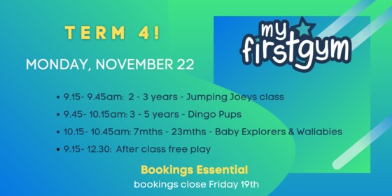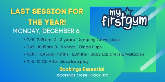 Are you looking for something to do with the kids during the Christmas School Holidays? GCMBA has partnered with My First Gym Robina to offer 50 discounted tickets to GCMBA Financial Members to attend any of the standard scheduled classes for 0 - 15 year olds, for the week running Monday 13/12/2021 - Friday 17/12/2021   Multiples and their siblings are welcome.     My First Gym classes provide children with benefits in: - Socialisation  - Stability  - Locomotor skills  - Self-confidence  - Introduction to Fitness  - Body Awareness  - Strength & loads of fun!   Baby Explorers, Walking Wallabies, Jumping Joeys & Energetic Emus classes require parental participation. One parent participating per family is sufficient.   Free play is also available on Tuesday 14/12 and Wednesday 15/12 prior to, and concluding all sessions between 8:30am - 12:30pm. A scheduled session must be attended to utilise Free Play.    NOTE FOR THE ADULTS! Coffee is available next door at Alpine gym. Lots of room to park prams, the facility is gated and closed in, with air conditioning, fridge, and microwave for bottles if needed.  BYO snacks NUT FREE    Bookings are Essential. 50 tickets are available for purchase on a first in first serve basis. Limit of one ticket per child for the week 13/12/2021 - 17/12/2021. Class must be selected at the time of booking. Siblings/multiples may attend different classes. Bookings must be made by 5pm Tuesday 07/12/2021 December.  Cost: GCMBA Financial Members - $7.50 per child.